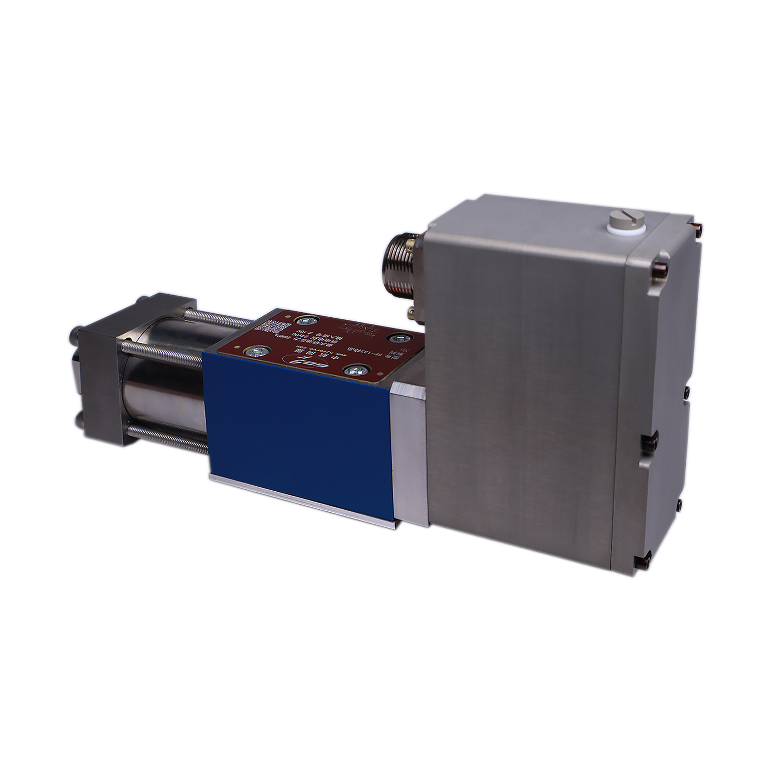 FF-133系列电液伺服阀为直线直驱流量伺服阀,7MPa压差下,流量范围为5L/min到40L/min。该类型伺服阀采用直线力马达直接驱动,无先导级,内部没有节小孔等结构,因此其泄漏小,液压功耗低,抗污染能力强,系统供油压力降低对阀动态影响小。产品内部采用LVDT 阀芯位置传感器进行位置闭环控制,因此其滞环小、分辨率高、重复精度好、动态高。根据用户需要可设置断电失效对中或者固定偏置,可使系统意外断电后处于设定好的安全状态。控制盒上设计有外部电气零位调整装置,使用更加方便。产品壳体为不锈钢或铸铁,结构强度高,可耐高压。适用于钢铁冶金,试验设备等。